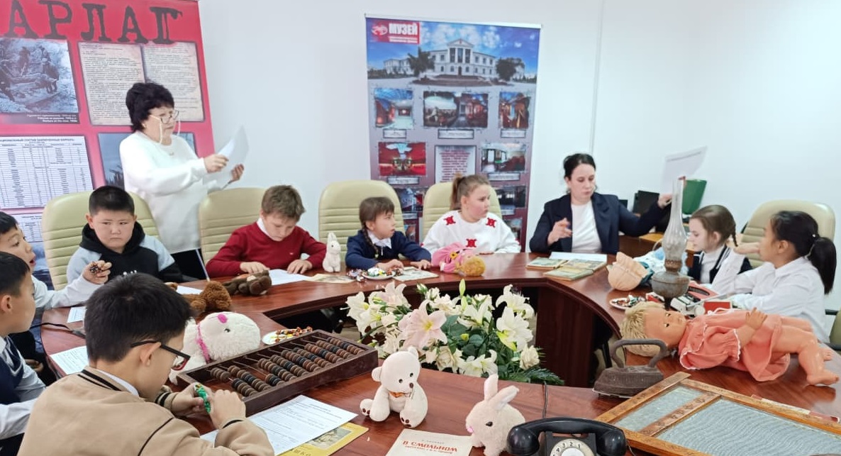 Балалар туған өлкелерінің тарихы арқылы қызықты саяхатқа аттанды: олар қызықты деректермен танысып, экспонаттарды қарап және музей заттарымен жұмыс істеуді үйренді.